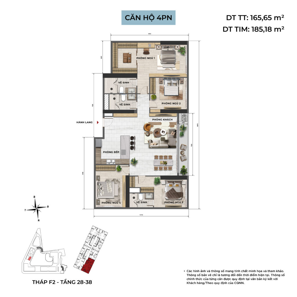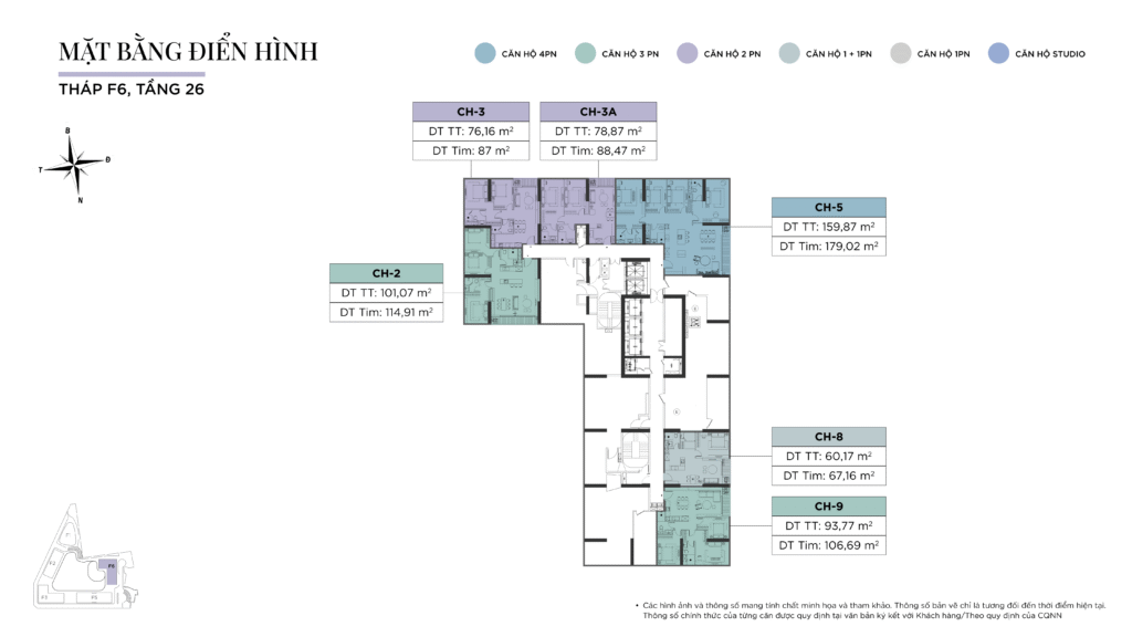 Quy mô gồm 5 tòa trong đó 1 tòa văn phòng và 4 tòa chung cư